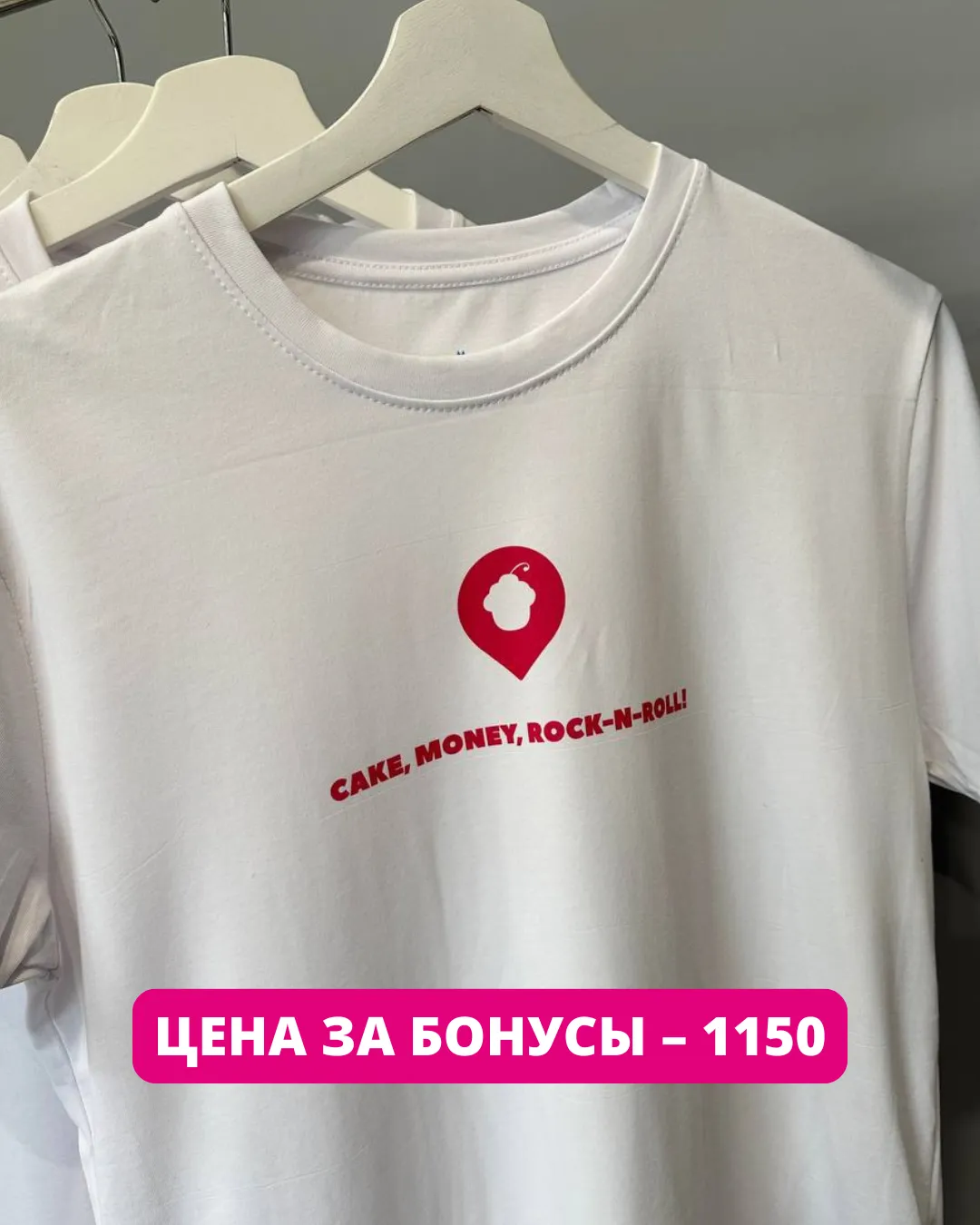 Этот мерч мы запустили специально для тех, кто любит стиль и торты! Теперь у вас есть уникальная возможность приобрести тематическую футболку с яркими надписями не только обычным способом, но также за бонусы, получая еще больше выгоды! Чтобы приобрести товар за бонус напишите нашему менеджеру!