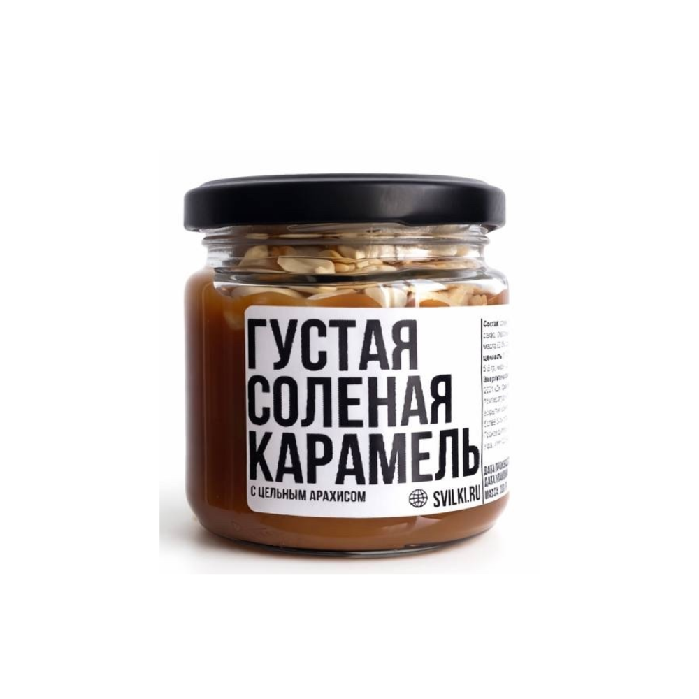 Соленая карамель ГУСТАЯ С ЦЕЛЬНЫМ АРАХИСОМ 200 гр. 33%