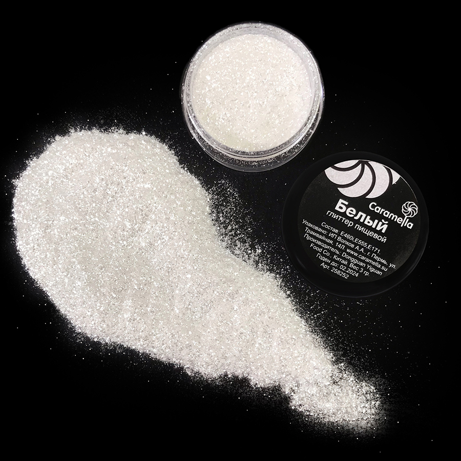 Глиттер Белый Caramella 3 гр пищевой